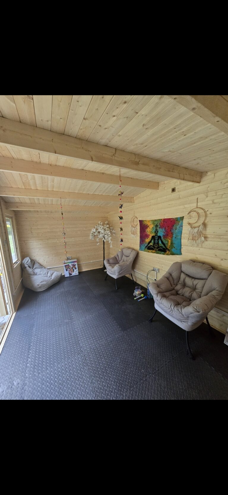 Foxwood Lodge has two pods on our land in the garden area, one which acts as a sensory area/relaxation area for individuals who may want a less stimulating environment away from the main building, a onsite Gym area for people to exercise and focus on Yoga and other fitness sessions.